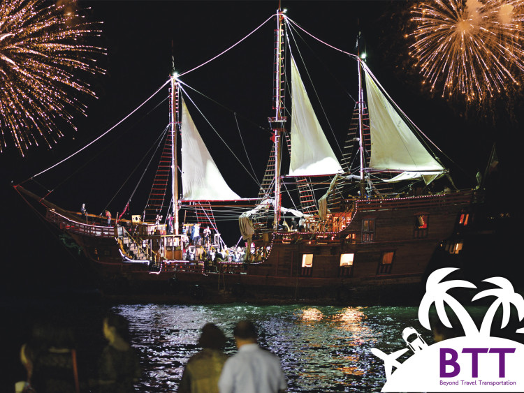 Todo sucede a bordo de 700 toneladas de madera trasformadas en un increíble galeón, donde los piratas le brindaran un excelente servicio y divertido entretenimiento.